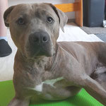 Bei Evita wurde leider Knochenkrebs festgestellt und deshalb ihr linkes Vorderbein noch in Ungarn amputiert. Von den Operationen hat sie sich sehr gut erholt - sie hoppst jetzt dreibeinig fröhlich durch den Tag.